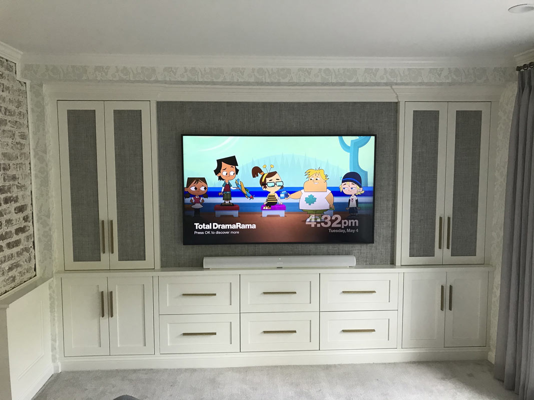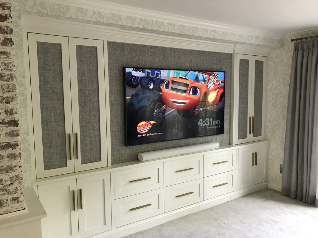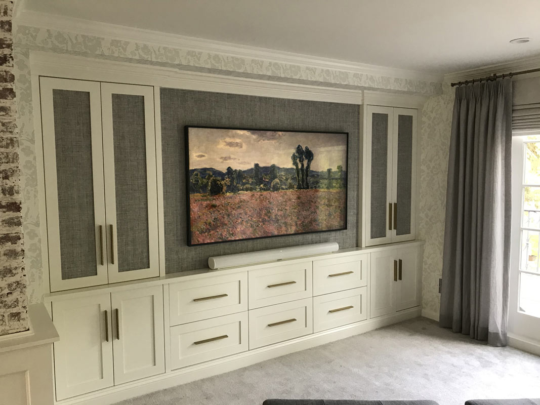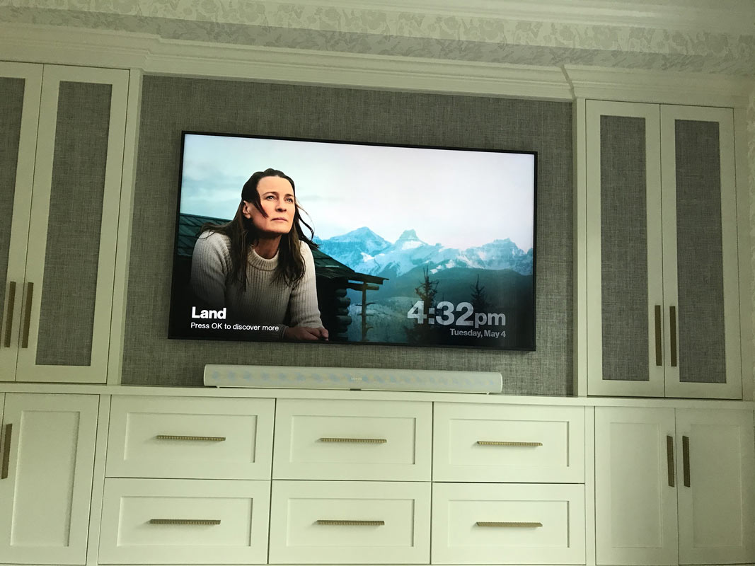 For this project, PAC worked with the client’s interior designer and cabinet maker. This system features a 65” Samsung Art Framed Television with a Sonos soundbar below. The rest of equipment is hidden behind cabinet doors. The goal of this system is to be very subtle. When the system is not in use, the television becomes a piece of artwork.